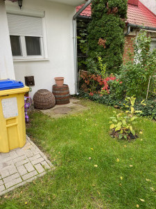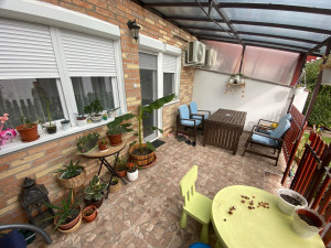 A pihenőkert  kb 30 m²-es saját és osztatlan közös kert is van a 18 m²-es terasz kiváló helyet biztosít a szabadtéri pihenéshez, vagy baráti összejövetelekhez. A házhoz tartozó 25 m²-es garázs kényelmes parkolást biztosít, és elegendő tárolóhelyet kínál. Tartozik még a házhoz egy kb 20nm utcafronti üzlethelyiség, mely vizesblokkal rendelkezik.