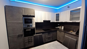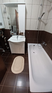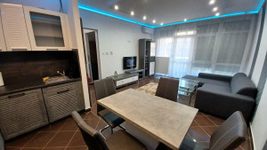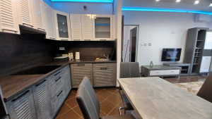 A lakás bútorozott és teljesen gépesített: hűtő, sütő, főzőlap, mikró, TV, mosogatógép és mosógép is rendelkezésre áll.